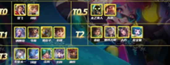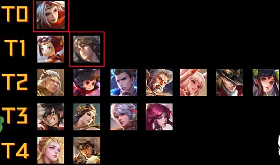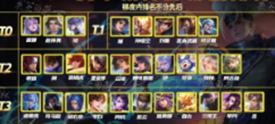 T1:鲁班大师,张飞,大乔,孙膑,盾山,太乙真人,鬼谷子
