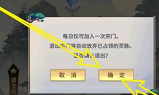 3、最后可以看见退出宗门提示信息,点击【确定】即可,如下图所示。