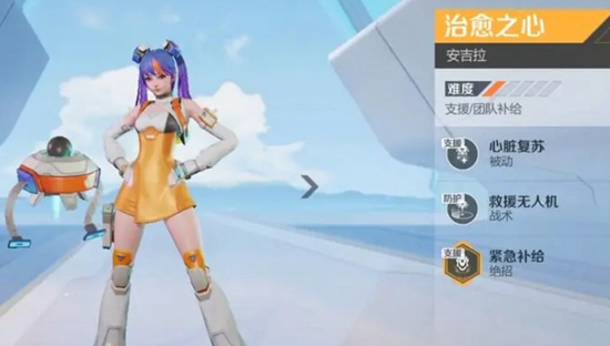 4.安吉拉:她属于支援类角色,对于队友能提供极强的补给和治愈作用,本身的被动可以通过无人机来救队友,而且这个过程安吉拉是没有行动限制的,可以一边让无人机救队友,自己一边出去用火力驱散敌人。
