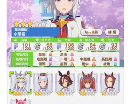 2.第二个推荐的马娘角色是小栗帽,这个角色在竞技场比赛中的表现是众所周知的优秀,养成成本极低是小栗帽成为很多玩家选择的最重要原因之一,而且她自身的各方面数值也是非常契合竞技场比赛的需求的,只要合理的搭配好比赛和休息过程,就能够轻松培养起来并且获得比赛的胜利,而且小栗帽前期表现非常稳妥,到了中后期的比赛中顺利通过的概率也是非常高的。