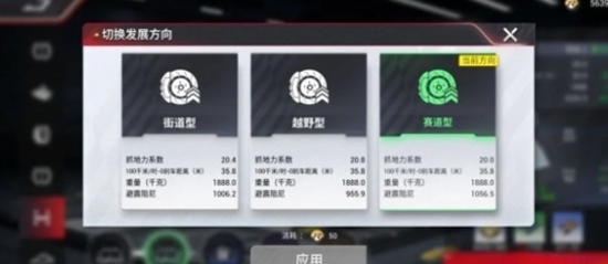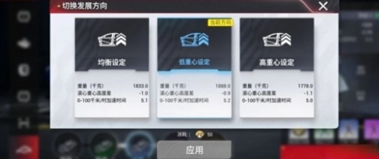 车身重心设置方面也有三个方向调整,如果偏向多种路况,玩家选择通用的建议用均衡设定.