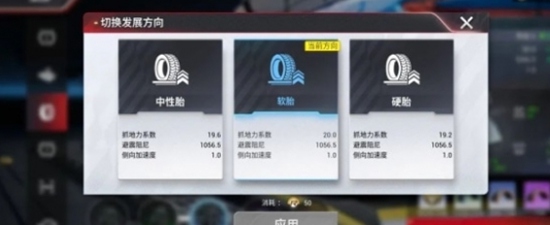 赛车的轮胎选择也是比较重要的一环,选择不同属性的轮胎来提速,这样在多样的地图上各种轮胎的特性容易表现出来.