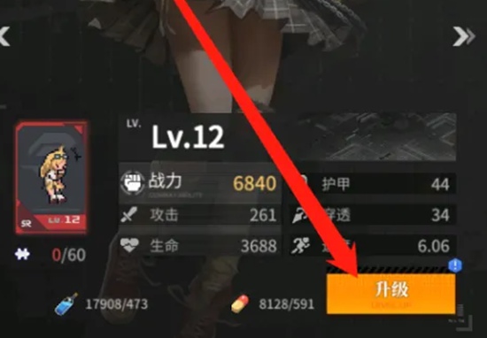 3.点击下方“升级”即可,升级需要消耗“强力药丸”和角色经验;