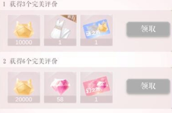 5、在主线任务的关卡中获得完美评价达到数量要求就可以领取对应的章节礼包,章节礼包中不仅有大量的金币奖励,还有不同类型的感应劵和一定数额的粉钻。
