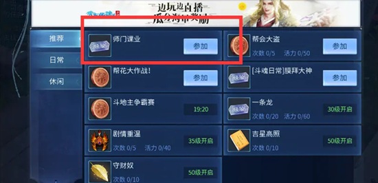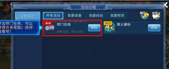 2、差不多跟着正传任务走能到20级,之后就会开师门任务。