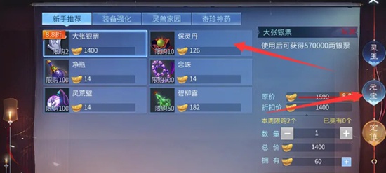 5、等到了30级后可以吃保灵丹,在商城——元宝——新手推荐。