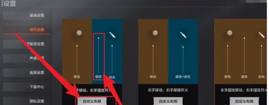 3.进入操作设置页面,点击“自定义布局”调整瞄准位置即可设置准星。