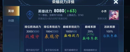 5.最后就是获取巅峰赛积分,每100积分能为英雄增加400点荣耀战力上限。