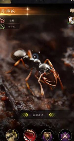 3.死神蚁也是射手蚁,擅长远距离战队,适合率领中排或者后排小队。它的核心技战斗能“死不松口”,在2、5、7回合,有45%的机率对随机3支敌军小队造成伤害。