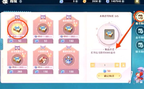 6、魔币商城在商城使用魔币可以购买金币袋,可以获得6000金币,每周限购五次。