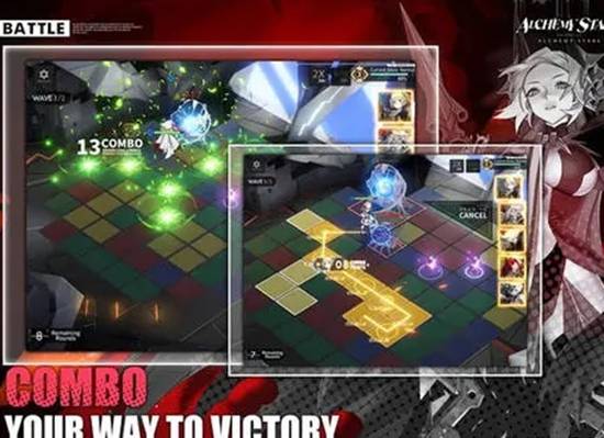 3.战斗环节中的五人小队有一名队长,在主动技能释放环节玩家可以选择更换队长(绝大部分作战中可更换三次队长),队长即使在经过与自己颜色不同的格子时也能进行平A与连锁技能的触发。在不讨论特定技能与特定格子对颜色的固定要求时,将队长替换为与行进路线颜色不同的角色时可以多触发一轮平A与连锁技,是重要的补充输出的手段。