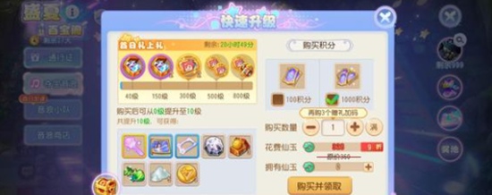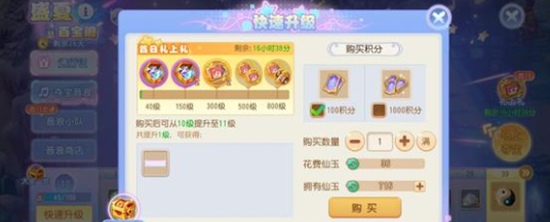 3.购买积分获取,有单次购买和多次购买两种方式单次购买,每次百宝阁升级1级,花费36仙玉/次多次购买,每次百宝阁等级可升级10级,首日九折后花费328仙玉/次