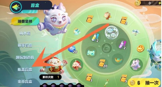 2、打开盲盒界面,找到【瓶盖盲盒】,并点击它。