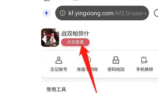 3.点击反馈之后会跳转到浏览器,玩家在该界面中先点击登录,如图所示
