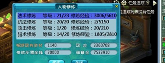 2、人物修炼、副本官员学习技能、召唤兽秘传获取三界功绩计算方式为:现金/5000+储备金/10000,取整。