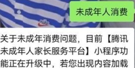 2、点击进入公众号后,给客服发送消息“未成年人消费”,然后客服就会进行回复,其中有个链接入口。
