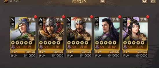 3.接下来就是吴国的配将,吴国阵容我们可以组合成配速攻队或者配中慢速队,目前最推荐的武将就是输出的孙尚香,它在战斗时有非常完美的防御效果,并且攻击效果也非常高,当然,陆逊和孙权也可以作为核心武将,在单核中慢速队中,孙尚香可以是吴国配将中最完美的武将,无论是输出还是控制、恢复等,效果都很不错下,在中慢速队中,最厉害的就是陆逊,它和孙尚香是有一定区别的,这种阵营中,输出会比单核的输出效果低,不过它的控制效果会队敌军非常不友好。