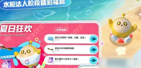2;夏日狂欢,活动时间是在7月21日至7月27日,登录游戏并且完成指定的任务,可以免费领取巅峰派对保护卡,彩虹币宝箱等等的奖励;