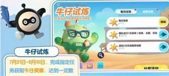 3:牛仔试炼,时间是7月21日开启,完成指定的任务可以获得牛仔奖章,累计九十个就可以召唤牛仔眼镜等奖励;
