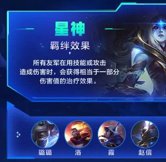羁绊效果:所有友军在用技能或攻击造成伤害时,会获得相当于一部分伤害值的治疗效果。