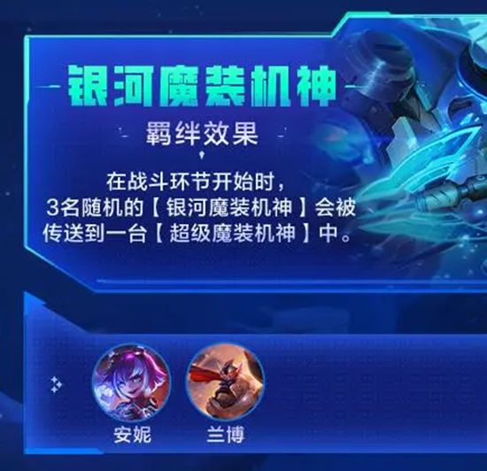羁绊效果:在战斗环节开始时,3名随机的【银河魔装机神】会被传送到一台【超级魔装机神】中。