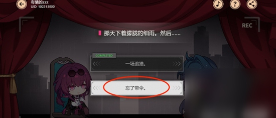 4、接下来刃出现了,我们点击刃进入下一个独白,选择【忘了带伞】。
