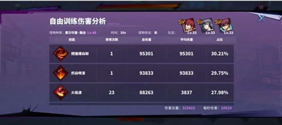 5、在对单情况下,并且都攒满3格状态条下橙色的喷发伤害接近红色的大风车,当然大风车多试几次伤害肯定不会这么低,不过也由此可见喷发的伤害也是不俗的,再配合上我们的夏玲吸怪,能短时间内打出高额的伤害,所以我们在打限时关卡的时候可以选择用喷发来打输出。