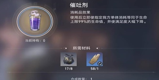 4、我们寻找完所以的材料之后,就可以点击合成催吐剂。