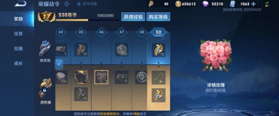 2、战令:每个赛季战令里面的奖励会包含亲密玫瑰。