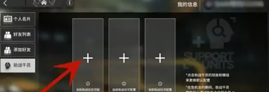 3.在助战干员的页面,点击+号。