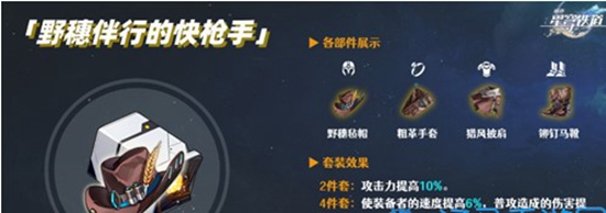 2.快枪手四件套最大的有点就是能够直接增加角色的速度面板,让银狼跑的更快,跑在主c前面就能够提前挂上弱点,从而让主c打出更高的伤害。同时佩戴泛银河商业公司,加上快枪手两件套的效果,能够一定程度上的弥补因为携带命中衣服所缺失的攻击力,这套阵容是非常容易凑齐的一套,玩家们都是可以搭配出来试试的。