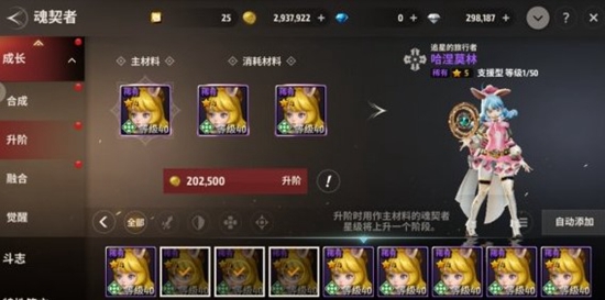 3.主要魂契者必须达到最高等级,并需要两个相同星级、相同稀有度的魂契者作为材料。
