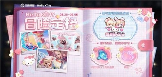 1.活动开放时间为8月28日持续到9月6日,在活动期间,大家可以通过使用冒险次数和HelloKitty在峡谷中进行探险,只要能够解锁五张不同的HelloKitty照片就可以获取到各种精美的道具,例如限时语言、静态表情等等。