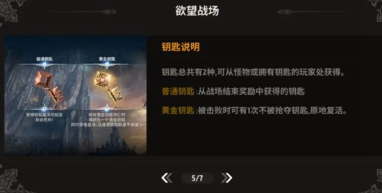 1.欲望战场是游戏中一项比较特殊的活动,需要玩家等级达到120级才能参加。这项活动最主要的玩法是在规定的时间内击杀怪物来获取钥匙,或者攻击其他拥有钥匙的玩家,从其手中抢夺宝藏。活动结束后持有最多钥匙的玩家将获得胜利。这项玩法的残酷性和疯狂杀戮足以引发玩家之间的激烈战争和猜忌。