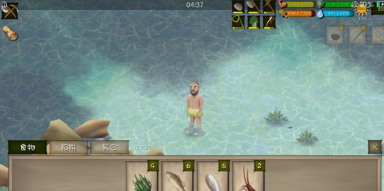 8.第二个的话就是制作一顿海鲜的大餐了,这个任务是通过抓一只大虾来触发的,大虾怎么抓捕呢,可以使用渔网来兜住它,当然也可以使用竹叉直接叉,总之方法是不限制的,触发之后就可以准备大餐所需要的的材料了,除了大虾之外,还不需要两个螃蟹,四个海虾,这两个材料都可以通过小型捕鱼陷阱来捕获的,最后需要的就是一个树皮碗,这个碗里要装满水,至此准备好就可以直接制作了。