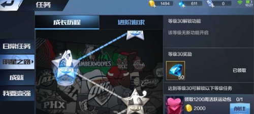 6、成就活动是钻石的主要来源,但是很多任务是很难完成的,简单的就是获得相应数量的球星,达到相应的篮板、分数。