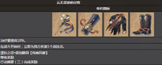 3.这套的加成是生命值加成、治疗量加成以及生命值加成,并且罗浮仙舟的两件套效果还能够直接提高全队角色的攻击力,不过需要注意的是,如果玩家带了罗浮仙舟两件套的话,最好是带一个速度鞋,不然的话是很难吃到罗浮仙舟第二条加成的。过客两件套提高治疗量也是很不错的,符玄开大能够全体回血,回血量不高,所以带过客二件套提一下回复量。