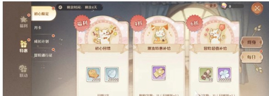3.除了与猫同行以外,福利中的另外两项初心限定和七日登录也能获取不少鱼干,其中初心限定每天可以免费领取两千鱼干,而七日登陆在第一天就可以直接领取五百鱼干。