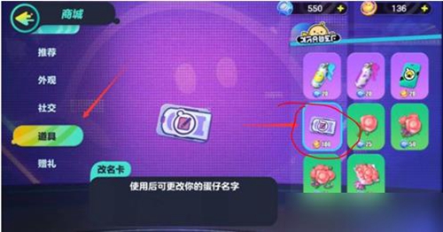 2、大家进入商城页面以后,大家找到属于自己的【游戏道具】点击查看以后,大家就可以看到【改名卡】。