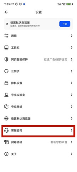 3、打开【设置】之后,找到页面中的【客服咨询】,点击进入。